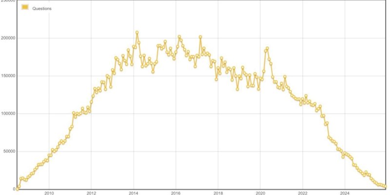 If I am pretty certain AI will not replace developers, not any more than Stack Overflow ever did... it seems that AI is replacing Stack Overflow itself. It is a dramatic fact for developers, and even for AI itself. Let me explain.